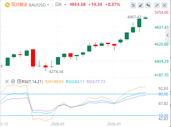 隔夜金价大幅度拉涨,涨破前高4888.0一线,当前亚盘时段进一步上冲至4968.0一线,整体的交易重心仍然保持上行。均线系统上,价格高于60及100均线,且均线处于拐头向上的发散状态,表明黄金处于偏多头走势中。日内操作上依托下方支撑线,尝试逢低做多的操作思路,关注支撑位4925.0附近,可考虑企稳布局多单,上行关注前压力位4968.0一线,若上破,多头将进一步测试5000.0整数关口附近的压力。