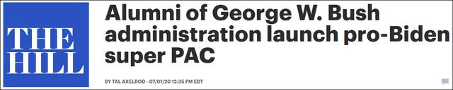 据《国会山报》、美联社等美媒当地时间7月1日报道,数百名小布什政府时期的前官员组织成立了一个“超级政治行动委员会”(super political action committee),这一组织宣称将不会支持特朗普连任,而是一起支持民主党候选人拜登。