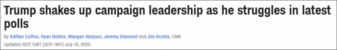 美媒评论,特朗普重组竞选班底意在提振摇摇欲坠的选情。