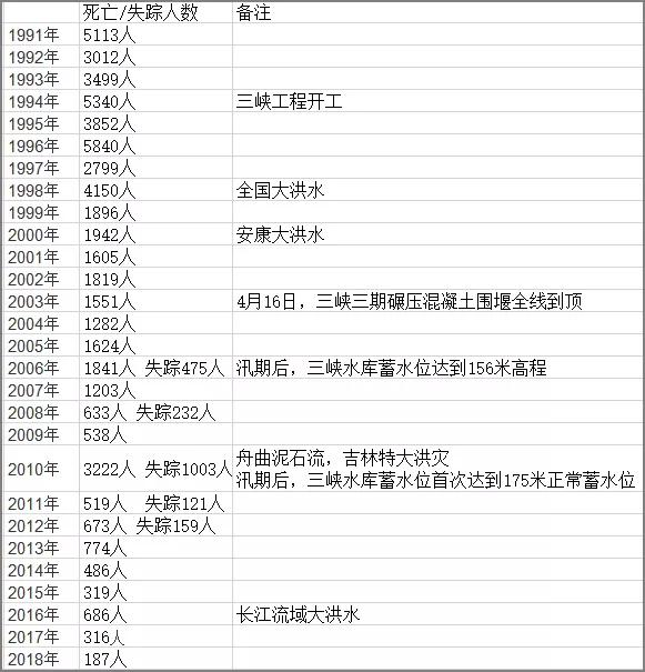 三峡蓄水后的2008年,中国因洪涝死亡人数首次下降到1000人以下。根据水利部数据显示,2018年因洪涝灾害死亡187人,为新中国成立以来最少一年。