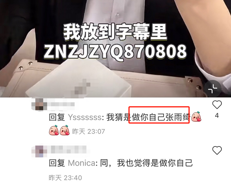 此外,张雨绮还在钻戒里刻了13个字符。前面的字母,网友猜测可能是“做你自己张雨绮”。后面的870808,自然是张雨绮的出生年月日。