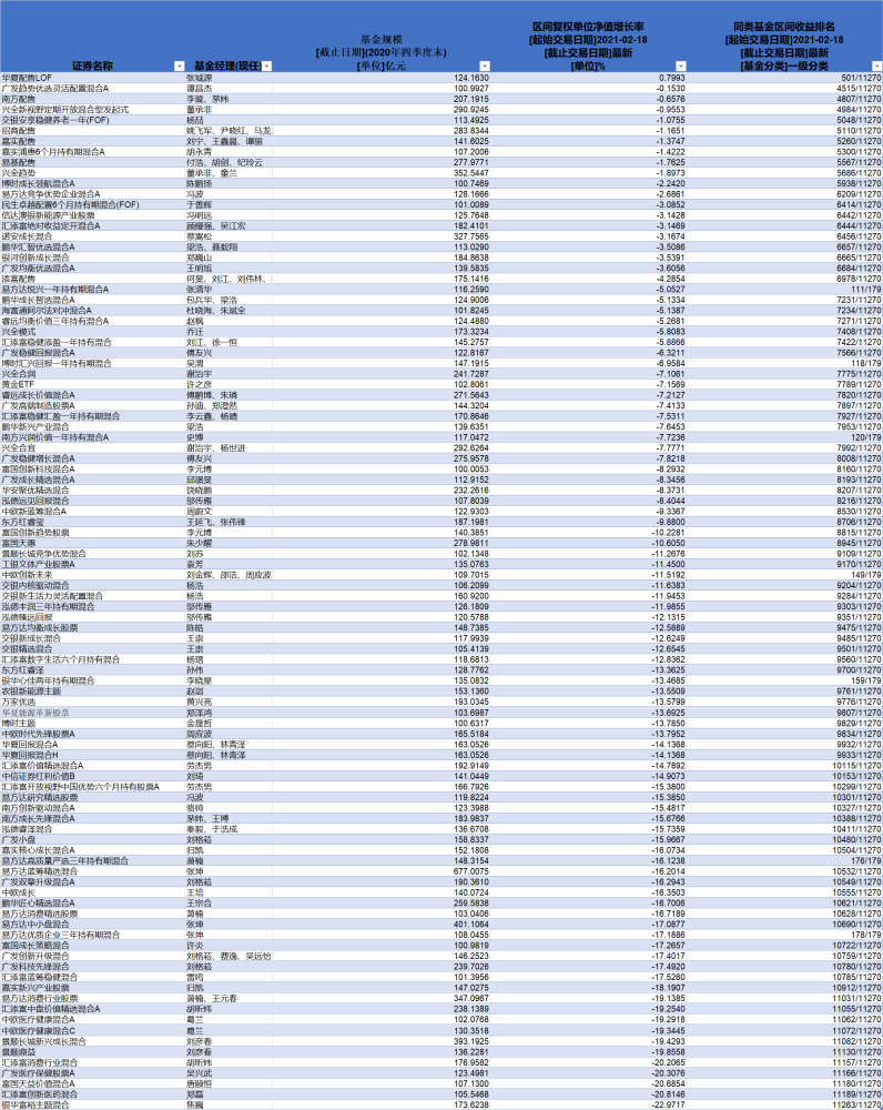 春节前备受市场追捧的牛基基金经理们,如刘彦春、萧楠、归凯、葛兰、张坤、刘格菘、王宗合、骆帅……均悉数出现在主动权益类基金收益排行后10%的名单里。