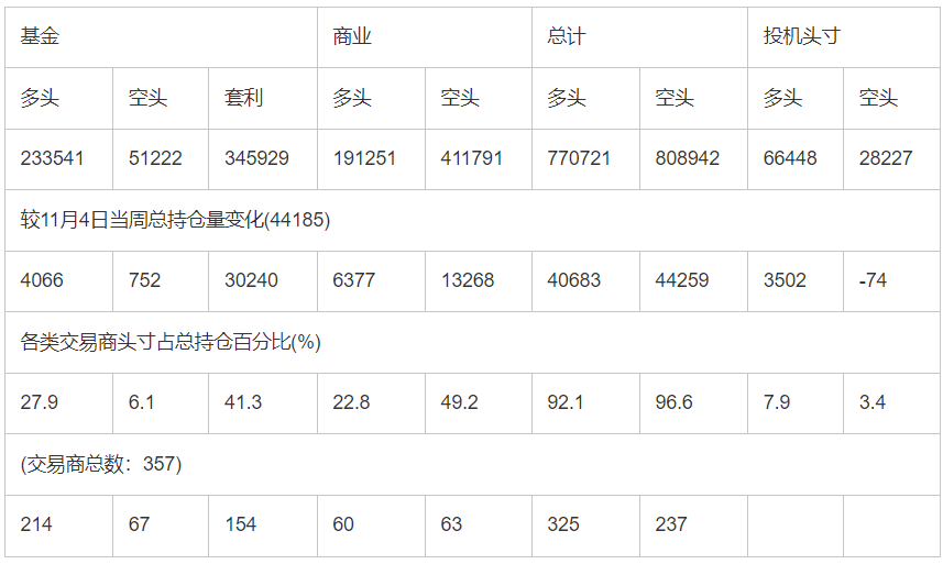 截止11月10日当周COMEX(纽约商品期货交易所)黄金期货和期权分类持仓报告: