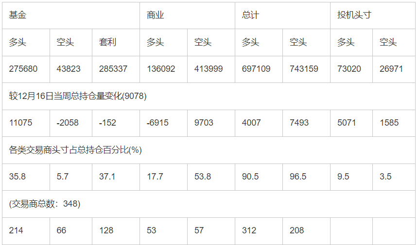 CFTC:截止12月23日当周COMEX(纽约商品期货交易所)黄金期货和期权持仓报告