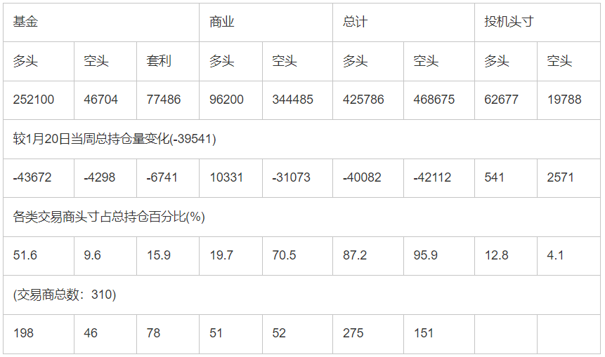 CFTC:截止1月27日当周COMEX(纽约商品期货交易所)黄金期货持仓报告