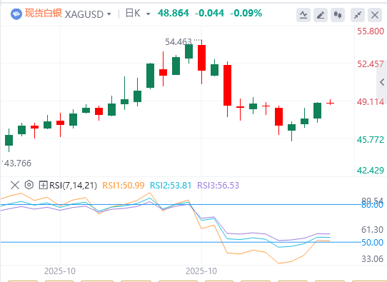 白银价格在49.00美元附近窄幅波动。贵金属的近期趋势变得不确定,因为它难以回到20天指数移动平均线(EMA)上方,该平均线交易价格约为48.55美元。