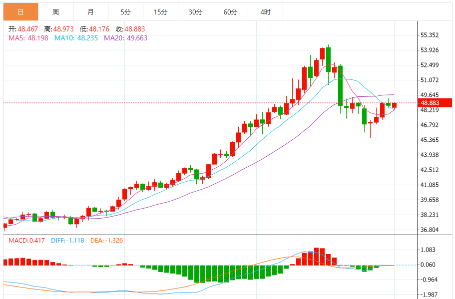 周一(11月3日),现货白银目前位于48.884美元/盎司附近,涨幅为0.47%。