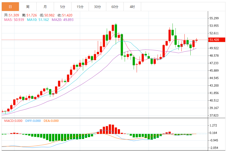周二(11月25日),现货白银目前位于51.416美元/盎司附近,涨幅为0.09%。