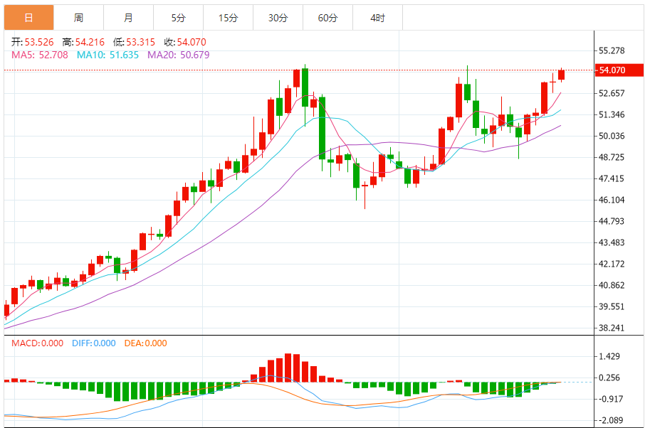周五(11月28日),现货白银目前位于54.087美元/盎司附近,涨幅为1.35%。