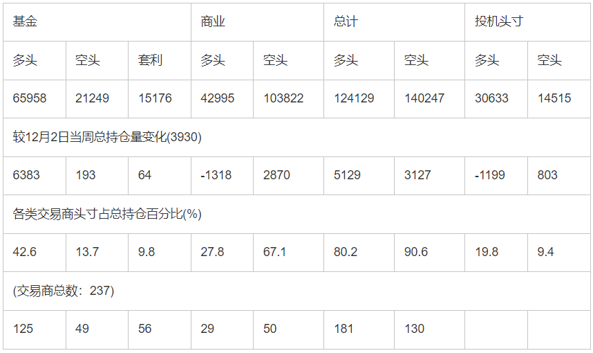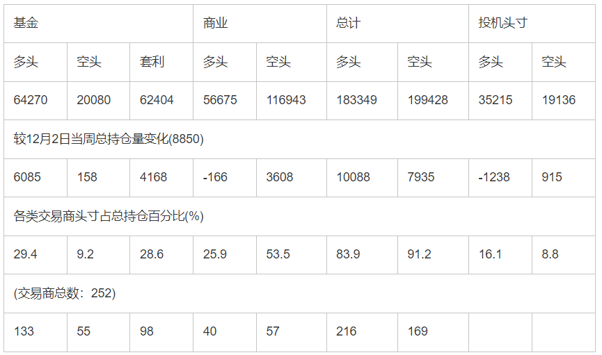 截止12月9日当周COMEX(纽约商品期货交易所)白银期货分类持仓报告:
