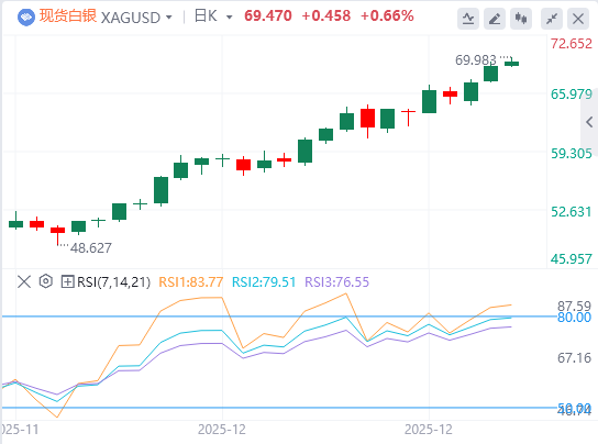 相对强弱指数(RSI)在日线和4小时图上均显示极度超买,阻碍了XAG/USD多头在美国关键宏观数据公布前进行新一轮押注。然而,更广泛的技术结构表明,该商品的阻力最小路径仍是向上。因此,任何修正回调仍可能被视为买入机会,且更可能保持有限。