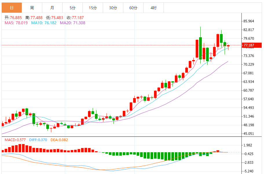 周五(1月9日),现货白银目前位于77.253美元/盎司附近,涨幅为0.39%。
