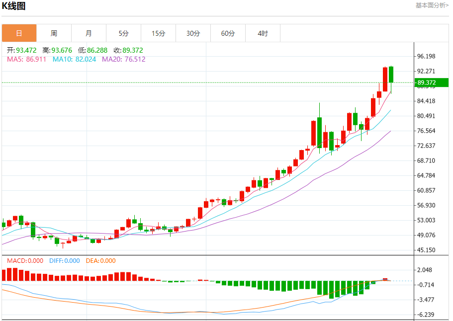 周四盘中,现货白银报89.210,跌幅4.32%。