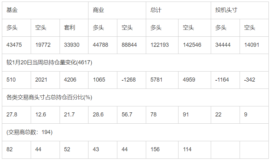 截止1月27日当周COMEX(纽约商品期货交易所)白银期货分类持仓报告: