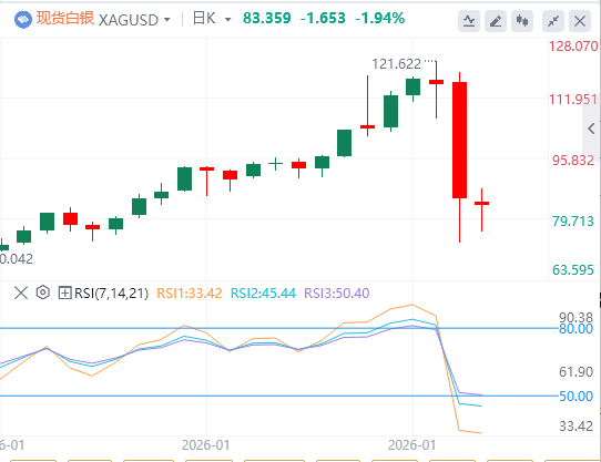 日线图中,白银价格维持在上升的50日均线79.50美元上方,保持中期上涨趋势。平均值的上升趋势支持了更广泛的偏见。RSI位于44(中性)反映了超买后动能冷却。若能持续守住高于平均线,则可能吸引买家,而收盘价低于平均线则暴露下行空间。