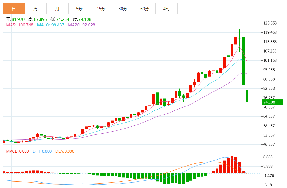 周一(2月2日),现货白银目前位于74.253美元/盎司附近,跌幅为13.19%。
