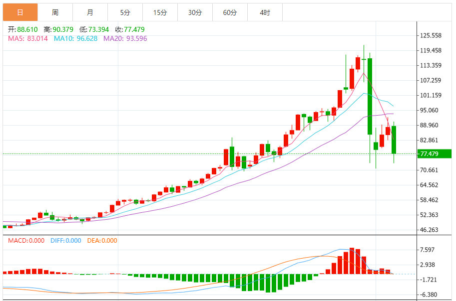 周四(2月5日),现货白银目前位于77.798美元/盎司附近,跌幅为11.78%。