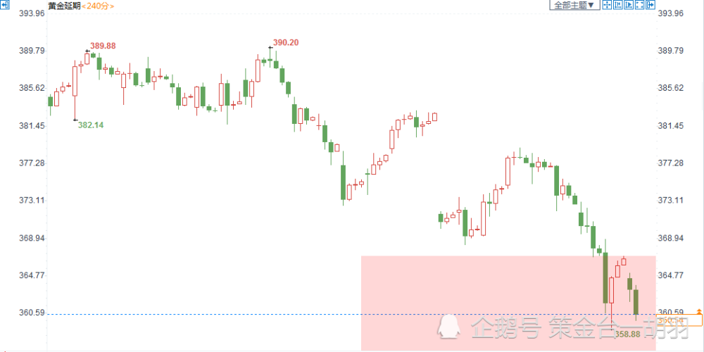 B、日内回踩356-355元区间,国际黄金预计回踩1700美元整数支撑,建议短线布局多单,仓位控制30%-50%,止盈目标3-4元,风险控制1.5-1.8元止损。