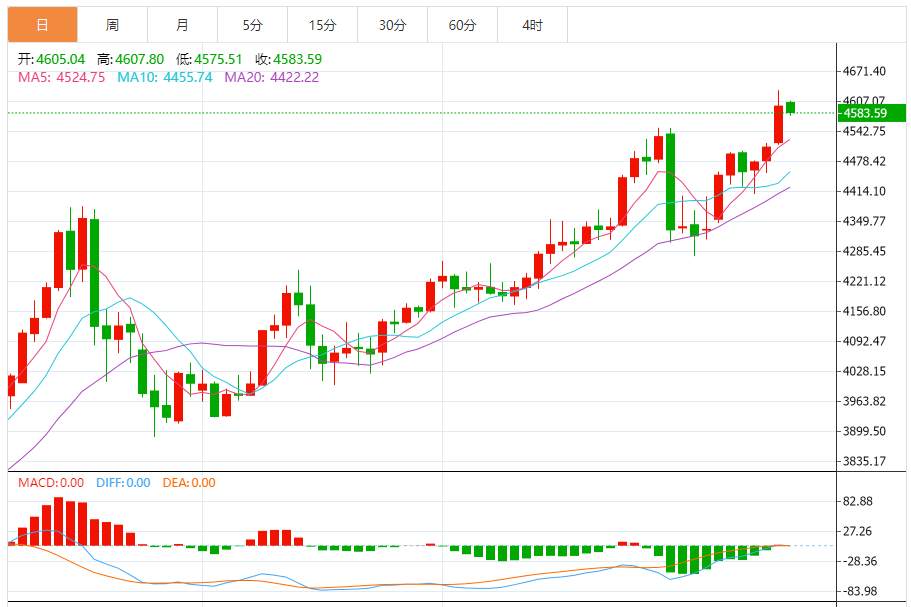 周二(1月13日),现货黄金目前位于4583.69美元/盎司附近,跌幅为0.29%。