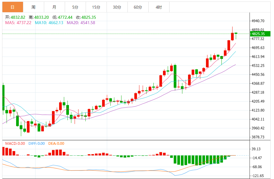 预期交易区间:在4700美元支撑和4900美元阻力之间。