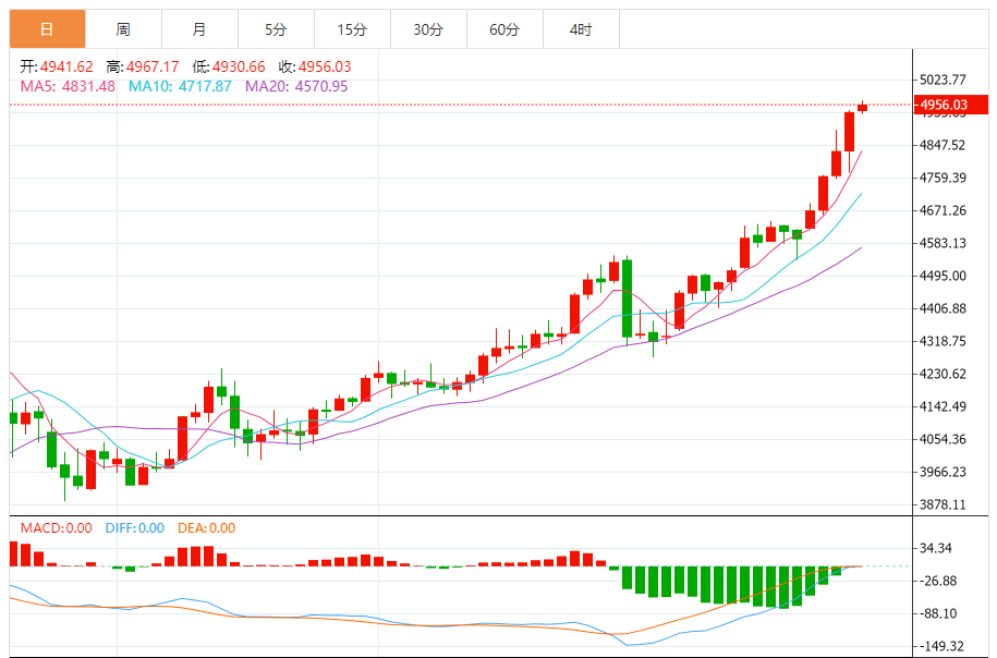 预期交易区间:在4850美元支撑和5000美元阻力之间。
