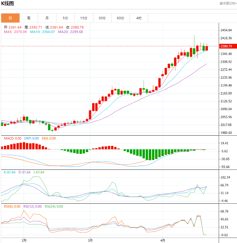 技术层面上,短线4小时图上,出现三重顶的形态,k线三次抵达2400附近,全部被挡在门外了,始终过不去,隔夜黄金再次验证2400阻力有效,而且出现看跌吞没的形态,两根大阴线直接覆盖阳线的幅度,k线从均线上方开始发力,直接击穿均线,金价也开始下落于布林带通道中轨线之下,短线各类技术指标下摆,显示短线出现调整性回落的风险在加大。下方首要支撑位还是在2357附近,继而是2323,若后者水平也下破,黄金或面临阶段性的回撤调整。若短线经过调整,金价能撑持在2323水平之上,则后市继续走高仍可期待。