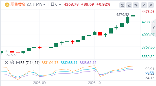 另外,明尼阿波利斯联储主席尼尔·卡什卡利表示,美国就业市场正在放缓,现在知道关税对通胀的影响还为时过早。尽管如此,交易员现在似乎已经完全消化了10月和12月每次会议上每次降息25个基点的预期,这继续对美元施加下行压力。