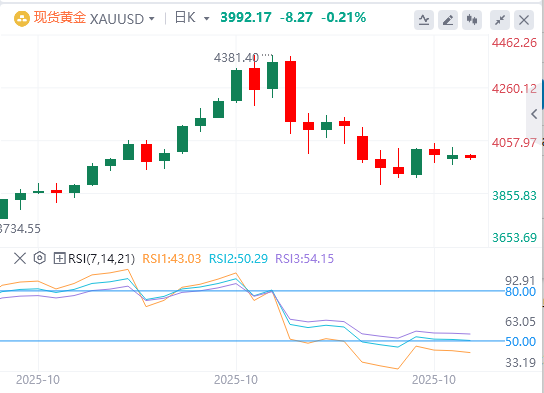 美联储上周今年第二次降息,但美联储主席杰罗姆·鲍威尔表示,今年再次降息“并非板上钉钉”。美联储官员的鹰派言论拖累黄金走低。美联储在上周的10月会议上将基准隔夜借款利率下调至3.75%-4.0%的区间。