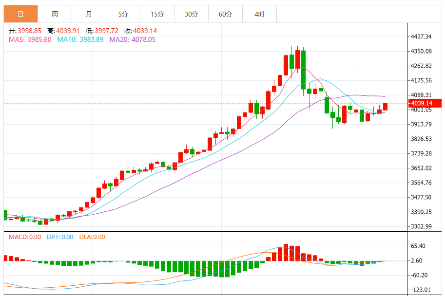量价关系:突破4020美元阻力时,日线成交量同步放大至18万手,较前一交易日增长22%,符合“量价齐升”的强势特征,印证突破有效性。