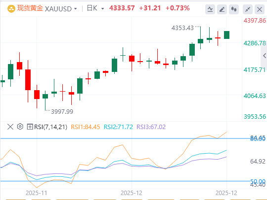 另外,美国10月份零售销售意外持平,此前的月度数据被下调至0.1%的增长。该数据低于预期,进一步确认了市场对美联储更多降息的押注。同时,有报道称美国总统唐纳德·特朗普将面试克里斯托弗·沃勒担任美联储主席。投资者似乎相信,新的特朗普派系美联储主席将采取鸽派立场,进一步降息。