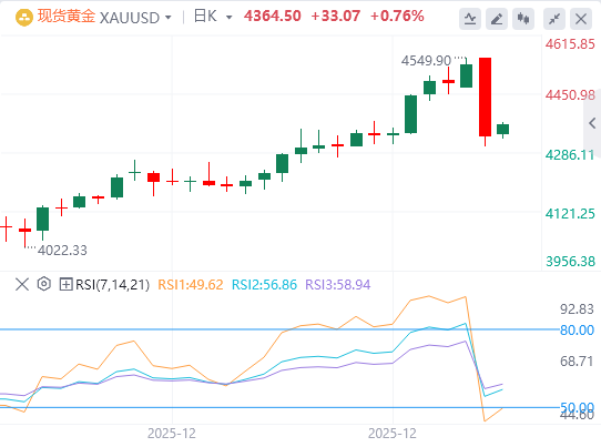 另一方面,黄金的初始支撑位出现在4,305-4,300美元区间,即12月29日的低点和整数。若有后续抛售跌破上述水平,将表明修正还有更大空间,可能目标是12月16日的4,271美元低点。