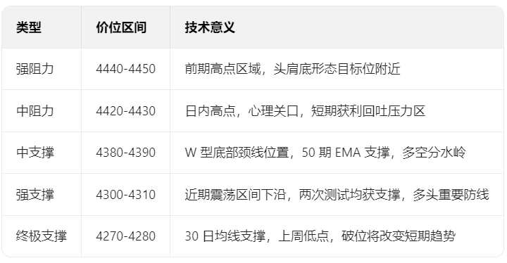 技术回调风险:跳空高开后存在缺口回补需求,4380-4390区域是回调第一目标