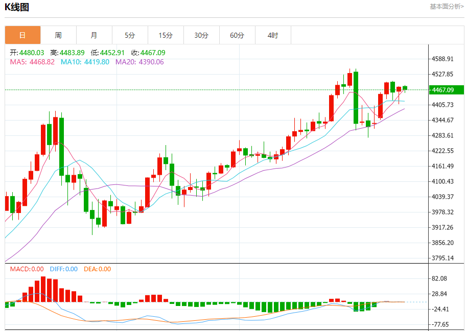 周五盘中,现货黄金报4466.49,跌幅0.24%。