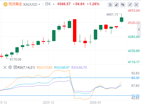 上周五,因美国12月非农新增就业人口低于预期,以及特朗普引发地缘政治不确定性,现货黄金重回4500美元上方,截至目前,黄金报价4566.57。