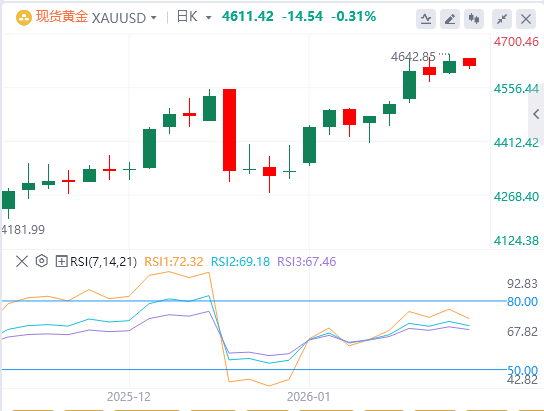 周三,从委内瑞拉到伊朗等地缘政治热点,以及特朗普政府对美联储的攻击,都促使投资者寻找避险资产。国际现货黄金盘中逼近4640美元,再创历史新高,截至目前,黄金报价4611.42。