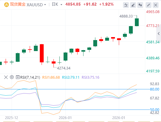 1月21日,黄金部分盘中强劲涨幅降至4900美元附近,或本周三早些时候触及的历史新高。美元(USD)走高,预计将借助两周低点后的隔夜反弹继续,这反过来被视为该商品的逆风。然而,支撑基本面支持多头交易,暗示修正回调可能会被买入。