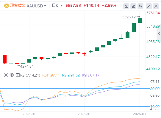 这,加上美元新一轮抛售,帮助避险黄金持续了创纪录的反弹,连续第九天,并在周四亚洲时段攀升至5600美元附近。