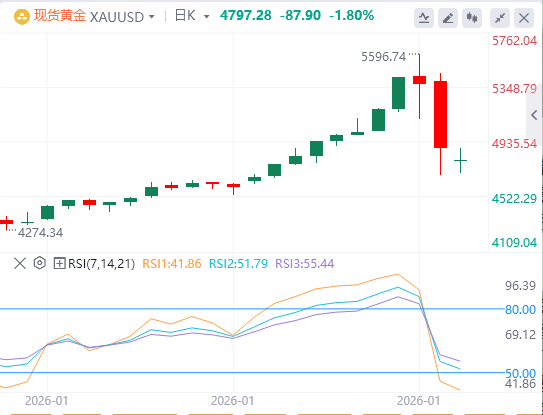 现货黄金自欧盘时段开启跌势,盘中一度暴跌12%至4680美元一线,创1983年以来最大单日跌幅,单日振幅近770美元,且抹去本周所有涨幅,截至目前,黄金报价4797.28。
