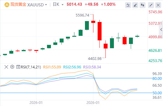 积极指标支持加特利形态正在进行的观点,目标是突破2月4日高点,约在5100美元区域,朝向1月底抛售的78.6%斐波那契回撤,约在5340美元区域,或1月29日高点5450美元区域。