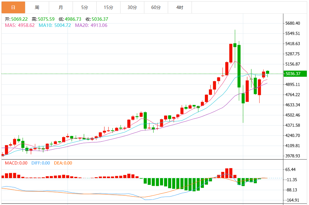 黄金价格走势偏向中性至上涨,多头未能突破2月4日创下的5100美元/盎司附近的高点。然而,值得注意的是,过去六个交易日黄金价格形成了一个更高的低点,这表明价格似乎处于均衡状态,黄金价格可能在4800美元/盎司至5100美元/盎司区间盘整。