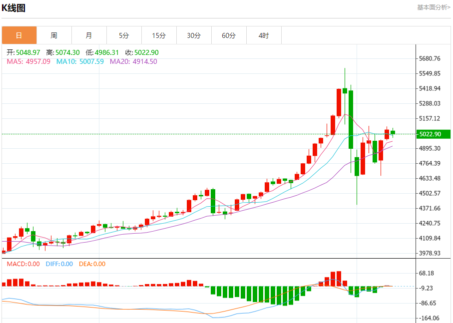 5000美元:今日多空分水岭,心理关口+技术支撑双重属性,日内低点5007.63美元,守住则多头趋势未破