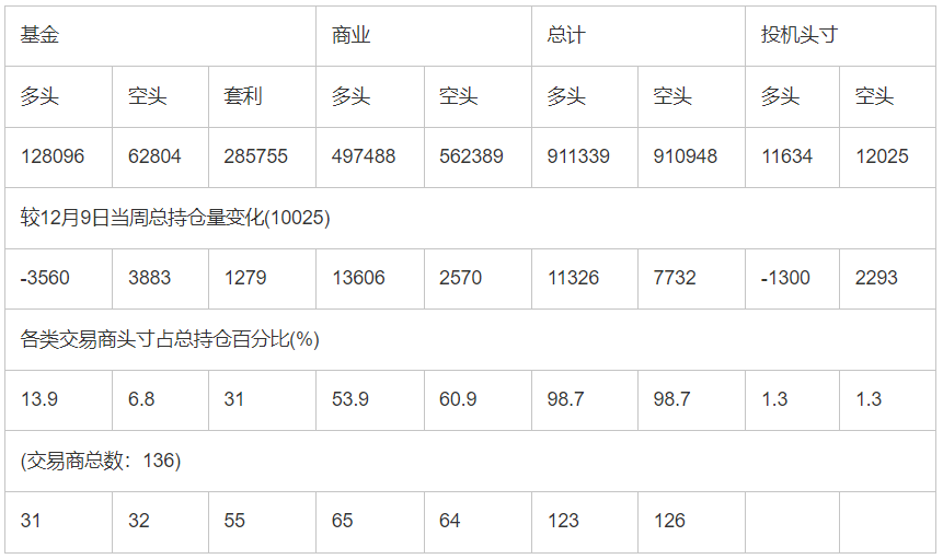 截止12月16日当周洲际交易所(欧洲)原油期货和期权分类持仓报告: