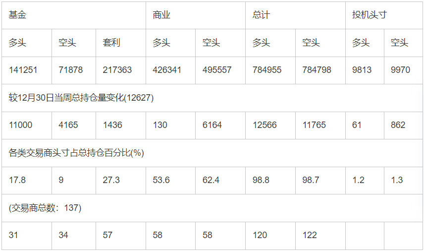 截止1月6日当周洲际交易所(欧洲)原油期货分类持仓报告: