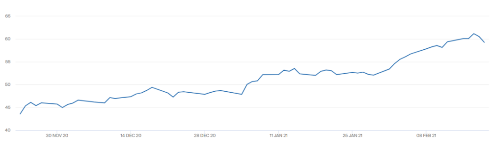 布伦特原油近3个月价格走势图