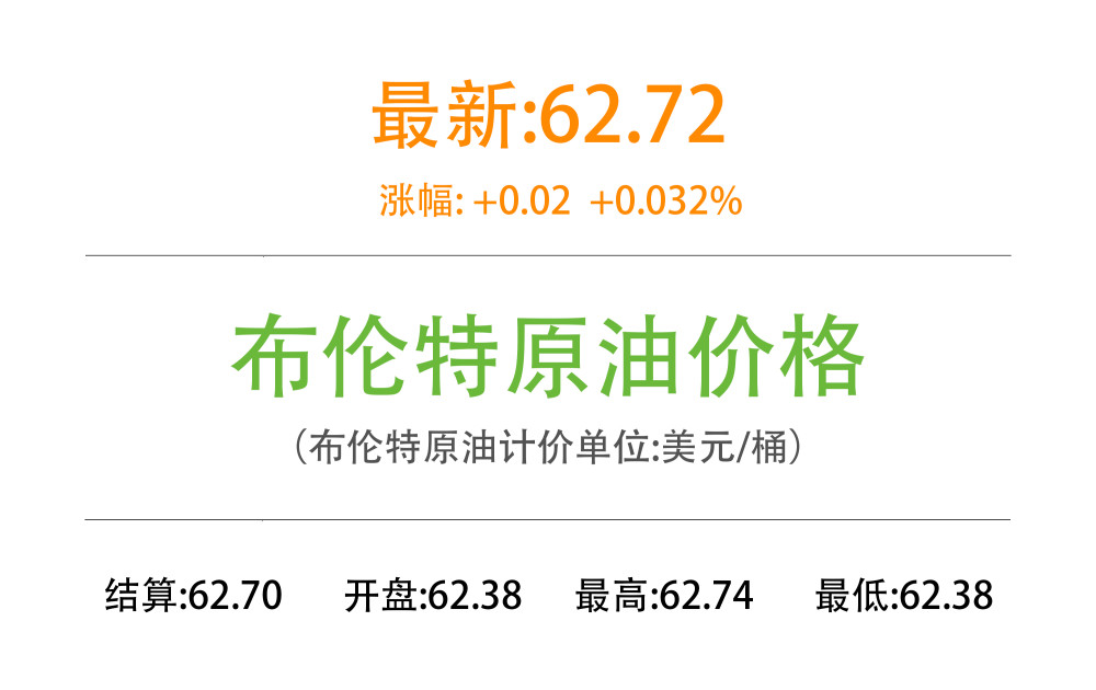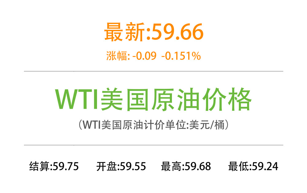 3月2日,WTI美国原油期货市场价格下跌,主力合约结算价报59.75美元/桶,涨幅-0.89美元;布伦特原油期货市场价格下跌,主力合约结算价报62.70美元/桶,涨幅-0.99美元。