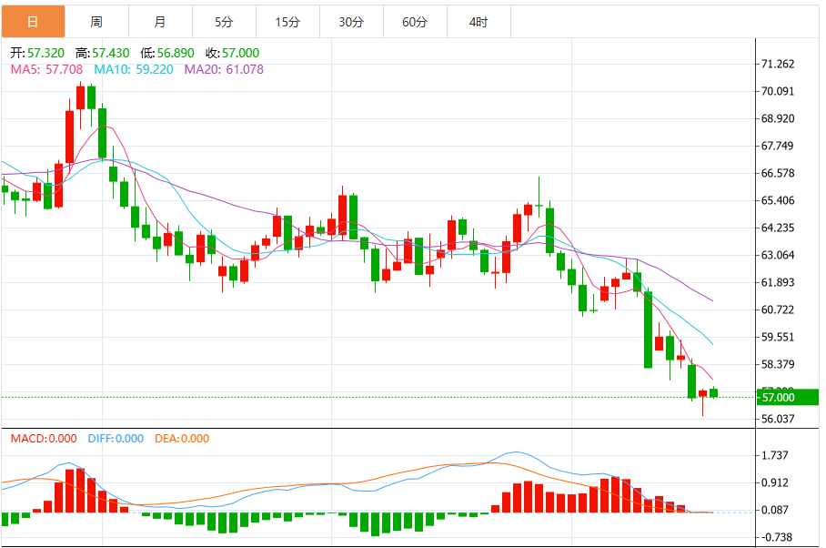 周二亚盘,美原油交投于56.92美元/桶附近,油价周一收于5月初以来的最低水平,投资者权衡全球供应过剩的可能性,加上贸易紧张局势加剧对经济放缓和能源需求疲软的担忧。