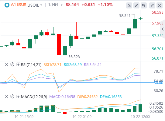 WTI 上涨表明中美贸易摩擦的缓解盖过了美元上涨和供应过剩担忧的影响。交易员等待周三晚些时候美国能源信息署 (EIA) 库存报告。截至目前,WTI原油报价58.16美元,Brent原油报价62美元。