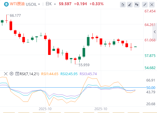 WTI因美元走弱而收复部分失地。然而,由于供应过剩担忧加剧,潜在的上行空间可能有限。截至目前,WTI原油报价59.59美元,Brent原油报价63.51美元。