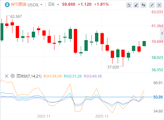随着OPEC+同意从2026年第一季度起停止石油产量增长,油价开盘时吸引了大量竞价。截至目前,WTI原油报价59.68美元,Brent原油报价63.98美元。