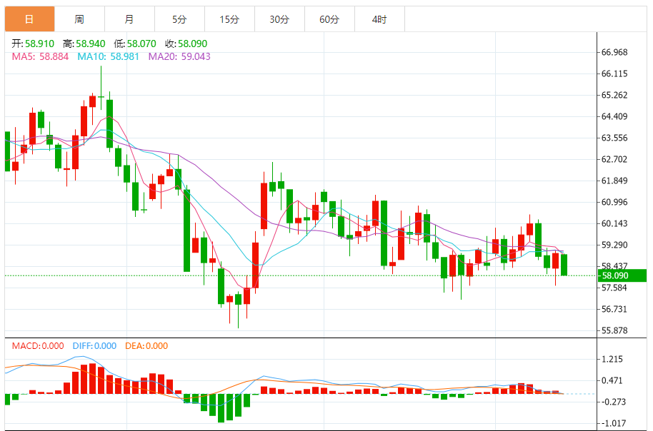 1月交割的WTI原油价格下跌1.1%,结算价每桶58.25美元;